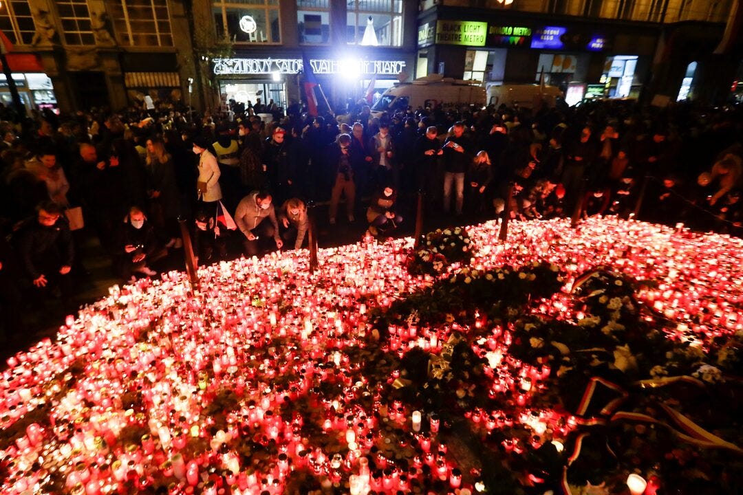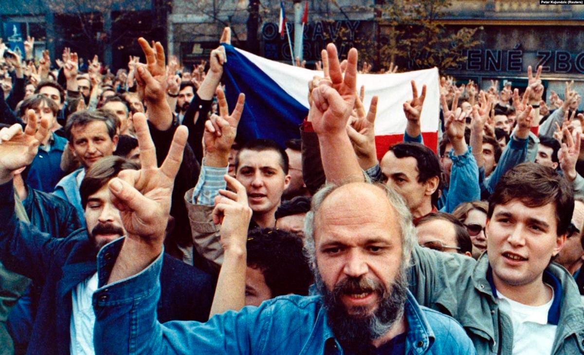 At the symbolic center of this cluster, thanks largely to the name it came to be known by, was Czechoslovakia’s Velvet Revolution, a largely non-violent affair (at least on the part of the protesters) that, in the words of historian James Krapfl, “was an inversion of [the] process” described by Girard in which there would normally be “unanimous exclusion, whereby the community unites in violence against something”; in the inverted case of Czechoslovakia in November of 1989, “it was the police attacking the marchers that cemented the unity of the latter party.”2 Whether or not revolutions require violence in order to qualify as revolutions was largely irrelevant in the case of Czechoslovakia (as well as the wider liberation of central and eastern Europe) in 1989; what was noteworthy, to many watching at the time and many historians analyzing the Velvet Revolution well into the twenty-first century, was and is the rapid and large scale transformation of a society once thought to have completely succumbed to the darkness of totalitarianism, all done without a single shot being fired against the authorities in whose interest it was to stop such a revolution from occurring in the first place.