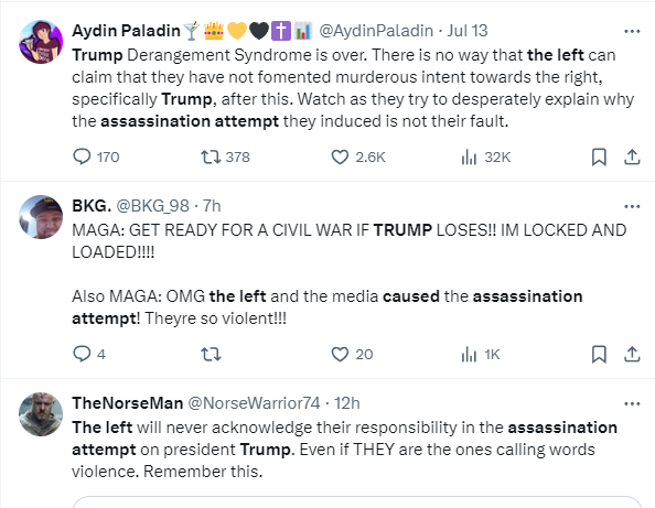 Did violent, existentially-framed rhetoric cause former President Trump to be almost assassinated?